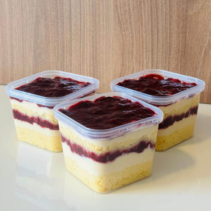Bolo de Pote Ninho com Frutas Vermelhas: massa branca, creme de ninho e geleia de frutas vermelhas.Peso aproximado: 230g.R$ 32,00